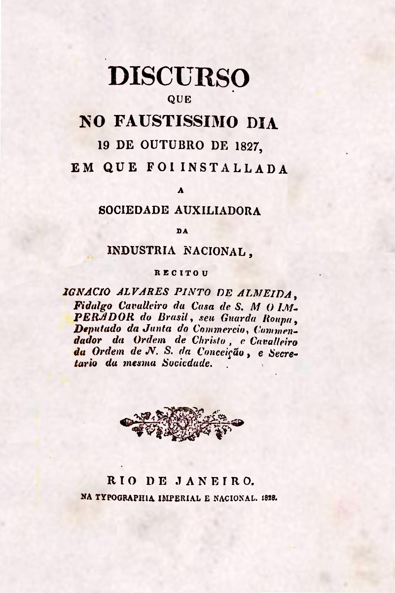 Ignácio Álvares Pinto de Almeida era comerciante no Rio de Janeiro, deputado da Real Junta de Comércio, Agricultura, Fábricas e Navegação, além de pertencer ao Conselho de Dom Pedro I. Com a inauguração da SAIN, assumiu estrategicamente o cargo de secretário perpétuo, que ocupou até a sua morte em 1843. Em seu discurso na abertura da nova entidade, ressaltou que “nenhum país floresce e se felicita sem indústria; por ela ser a móvel principal da prosperidade e da riqueza, tanto pública, como particular de uma nação culta e realmente independente”.