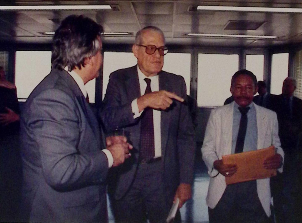 - Fui o primeiro engenheiro a entrar para o sindicato. O sindicato era só de empreiteiros. Como tinha que discutir dissídio coletivo com o Sindicato dos Trabalhadores da Construção e do Mobiliário, e como o nosso era só Sindicato da Construção Civil, sugeri que fizéssemos a extensão de categoria para discutir todas as categorias abrangidas pelo sindicato dos trabalhadores. Aceitaram a sugestão. Posteriormente, fizemos também a extensão de base porque nosso sindicato atuava somente em Duque de Caxias, enquanto o Sindicato dos Trabalhadores tinha como base Caxias, Nilópolis, São João do Meriti e Magé. Colocamos em votação e foi aprovado esse segundo projeto meu. Depois, cresceu mais um pouco e a extensão de base foi até Nova Iguaçu. Ao estender para Nova Iguaçu, passei a lidar com o segundo sindicato, que é o Sindicato dos Trabalhadores de Nova Iguaçu. Posteriormente, pediram extensão de base de Itaguaí, e aconteceu a mesma coisa com Angra dos Reis. Hoje o sindicato tem base territorial de Guapimirim até Angra dos Reis.- contou.